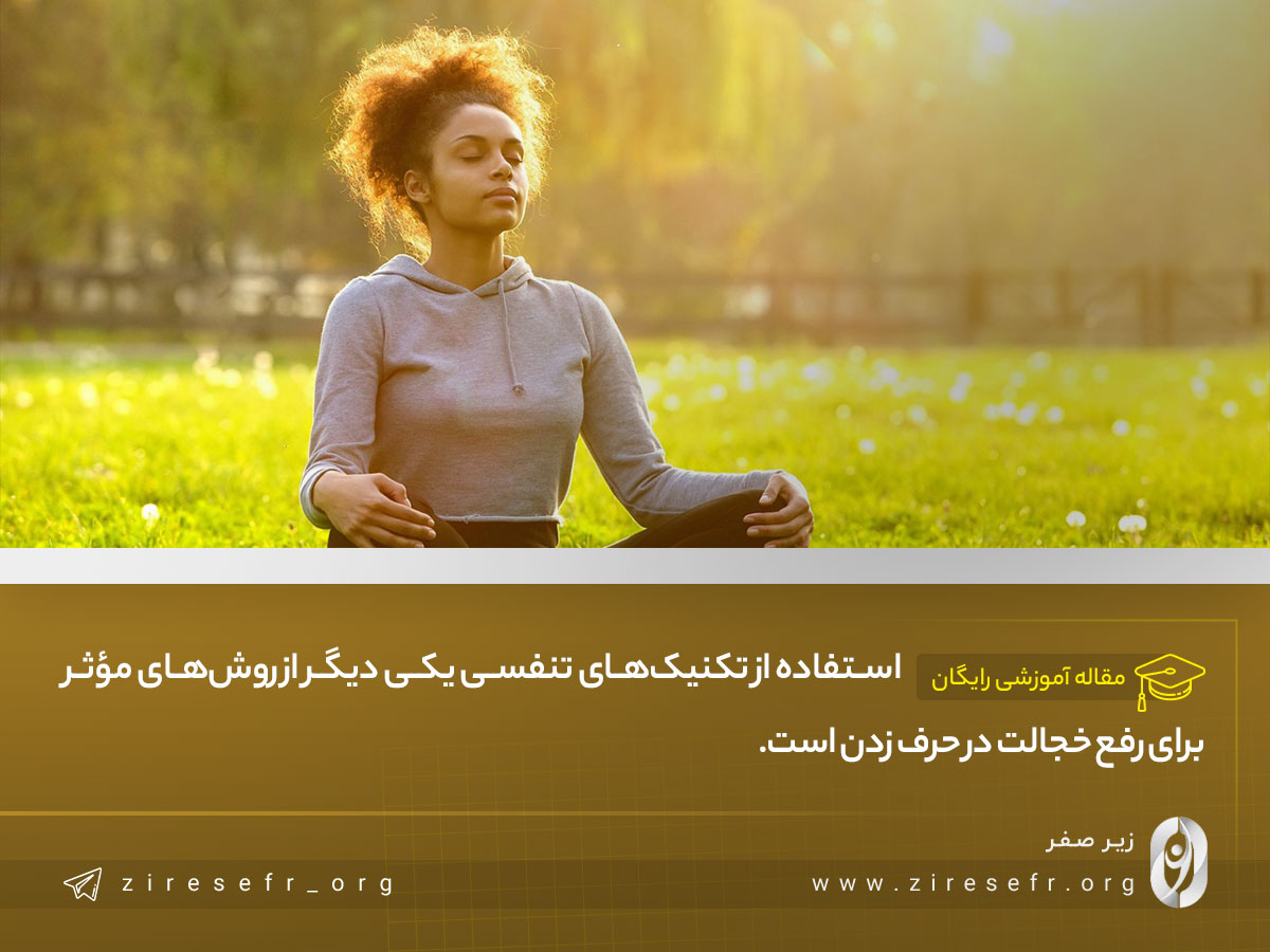 تنفس عمیق و آرام باعث کاهش استرس و اضطراب میشود. شما میتوانید با نفس کشیدن عمیق از بینی و ریههای خود، تا حدی فشارهای ناشی از خجالت خود را کاهش دهید.